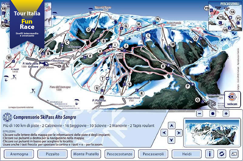 Comprensorio davvero importante e bello in tutte le sue componenti: Roccaraso-Aremogna, Pizzalto, Monte Pratello. Tutti i tipi di terreno e pendenze consentono ogni tipo di esercizio tecnico; troviamo ripidi impegnativi in tutte le zone, con forte concentrazione nella zona di Pizzalto che offre anche una rapida seggiovia esaposto al servizio di piste davvero “toste”. La varietà di piste ed i trasferimenti da un estremo all’altro del comprensorio rischiano di distrarre da un lavoro al 100% tecnico, ma offrono una gamma veramente completa di terreni.